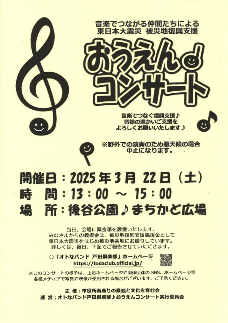 じゅりあん音楽隊の出演時間、曲目はまた後日お知らせします。